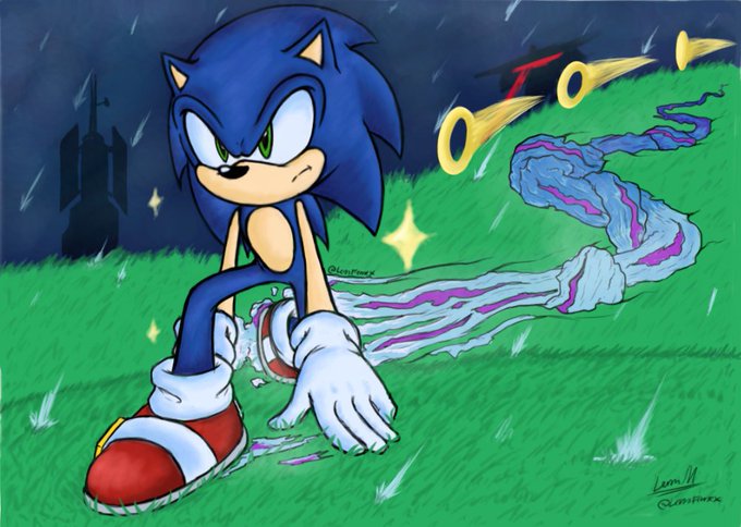 Been cautiously optimistic on the new details following #SonicFrontiers. I definitely love the art direction and stranded island setting the most so far, so I drew something with that sick raining effect. #SonicTheHedgehog #Fanart #Drawpile