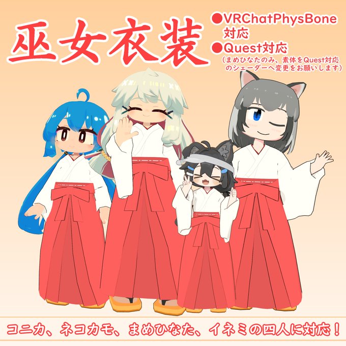 【衣装】巫女衣装[コニカ、ネコカモ、まめひなた、イネミ対応] | DCN-ララ dcn-rara.booth.pm/items/4440050 #booth_pm #VRChat お正月にぴったりな巫女衣装です! コニカ、ネコカモ、まめひなた、イネミの4人に対応しています!
