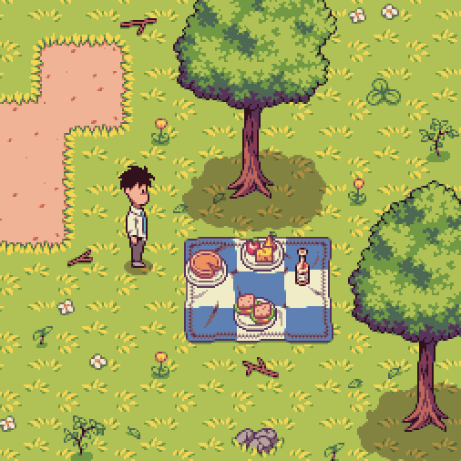 A cozy picnic spot. I made green colors more saturated, hope it looks better now! #pixelart #pixel_dailies #ドット絵