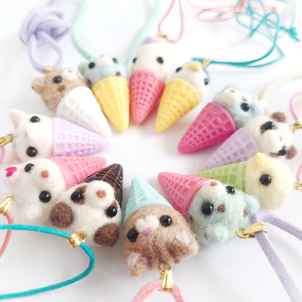 動物さんアイスペンダント たくさん作りました🍦 明日は花小金井 東部公園にて みんなデパート 10:00-16:00 お待ちしております😊 #ハンドメイド #ハンドメイド好きさんと繋がりたい #羊毛フェルト