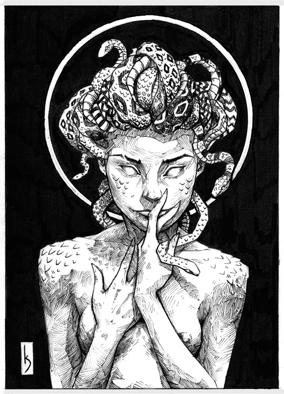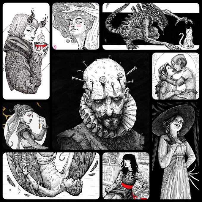 It's #PortfolioDay once again! I'm Kirk and I'm a pen & ink artist. Most of my work is themed around Greek mythology, horror and witchy shenanigans.