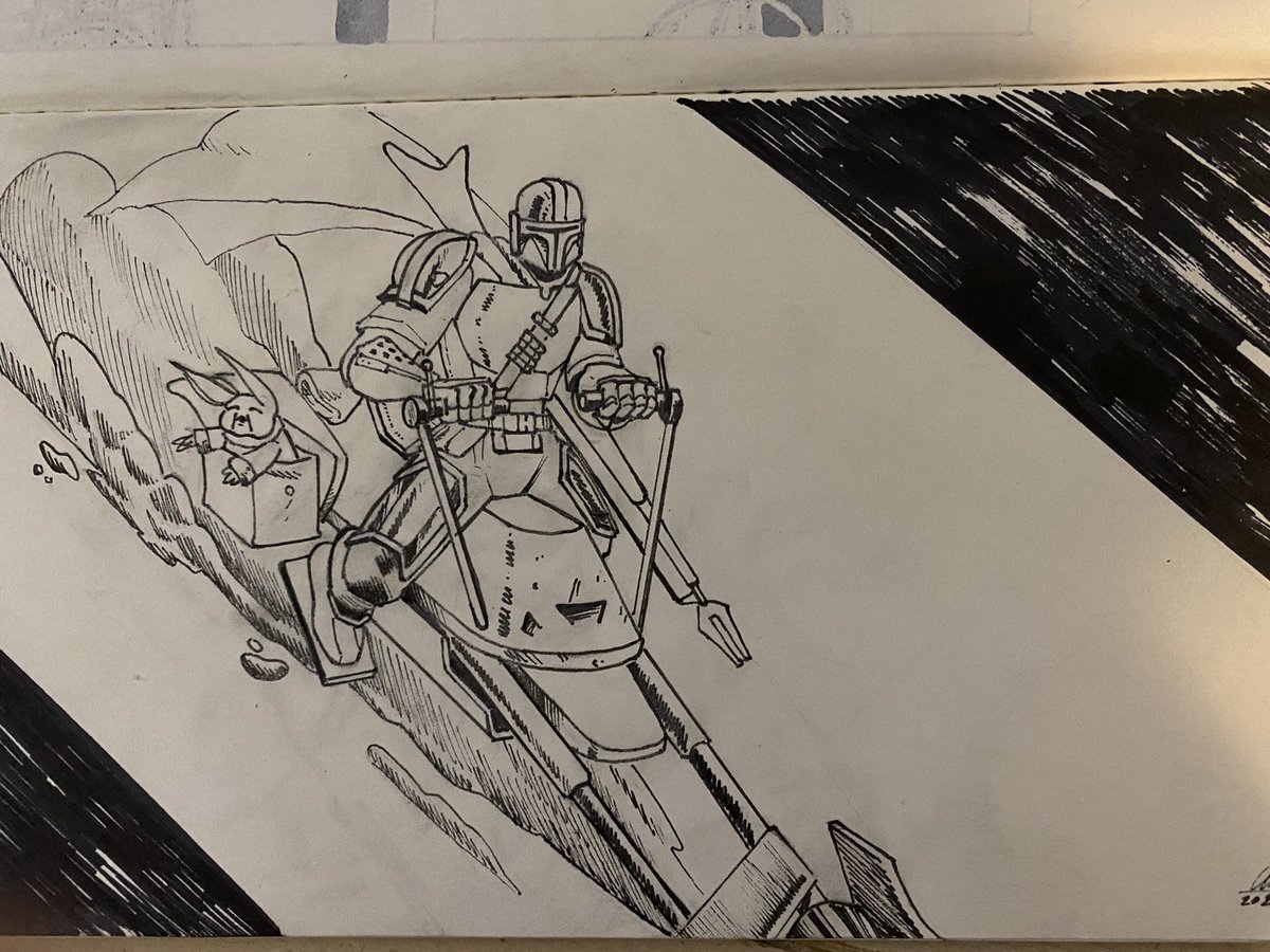 #inktober2022day21 this challenge is starting to get harder. Had to do a super quick mando comic for todays drawing #comicart #inktober #themandalorian