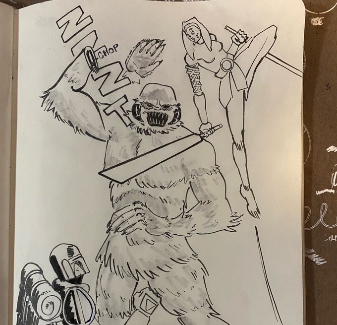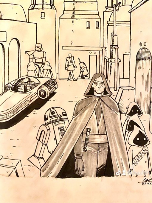 #inktober day 9 Luke and mando get chased off tatooine #inktoberday9 #artmoots #inktober2022 #starwars