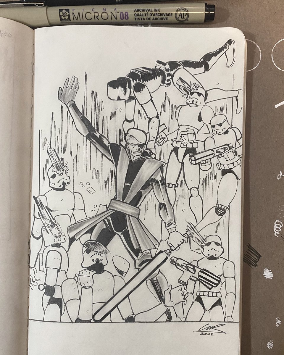 #inktober2022day20 Luke marches through the last squad of stormtroopers untouched #comicart #starwarsart #starwars #inktober
