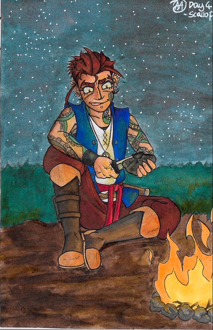 OC-tober / inktober day 4 - scallop (Trom - Human - fighter) You KNOW Trom knows how to cook various seafoods over a campfire, even if I'm not sure it's possible #inktober2022 #Inktober #DnD #October #oc #originalcharacter #DnDcharacter #dungeonsanddragons #Trom #tromseaver