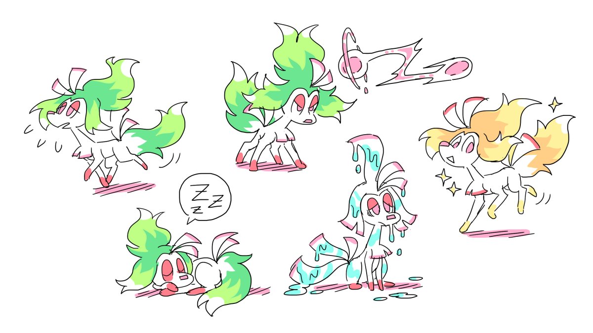 felt like drawing more of my terra inspired pokemon, ribburn! its fiery mane (and tail) is actually its longest ribbon burning. when they eventually burn up completely, theyre replaced by the second longest one, and they grow a new ribbon.