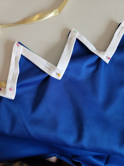 Slowly but surely making progress on my #hololive Reine cosplay. Will update once through bias tape purgatory. #Reinessance