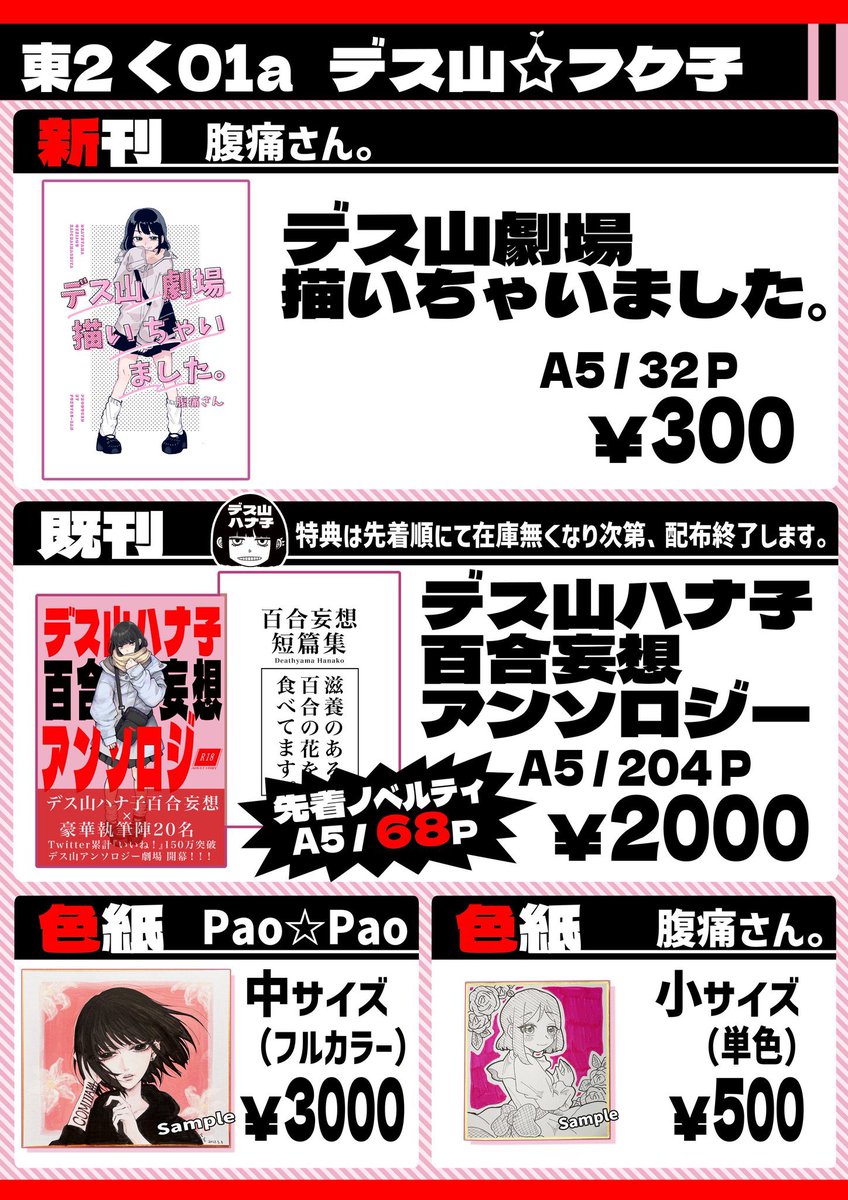 43 285 底辺絵師がマウントを取ろうとする百合 作者:佐々木坦々麺(@ssktntnmn ) 原案:デス山ハナ子 #コミティア143 #百合妄想アンソロ 23/01/30 18:25