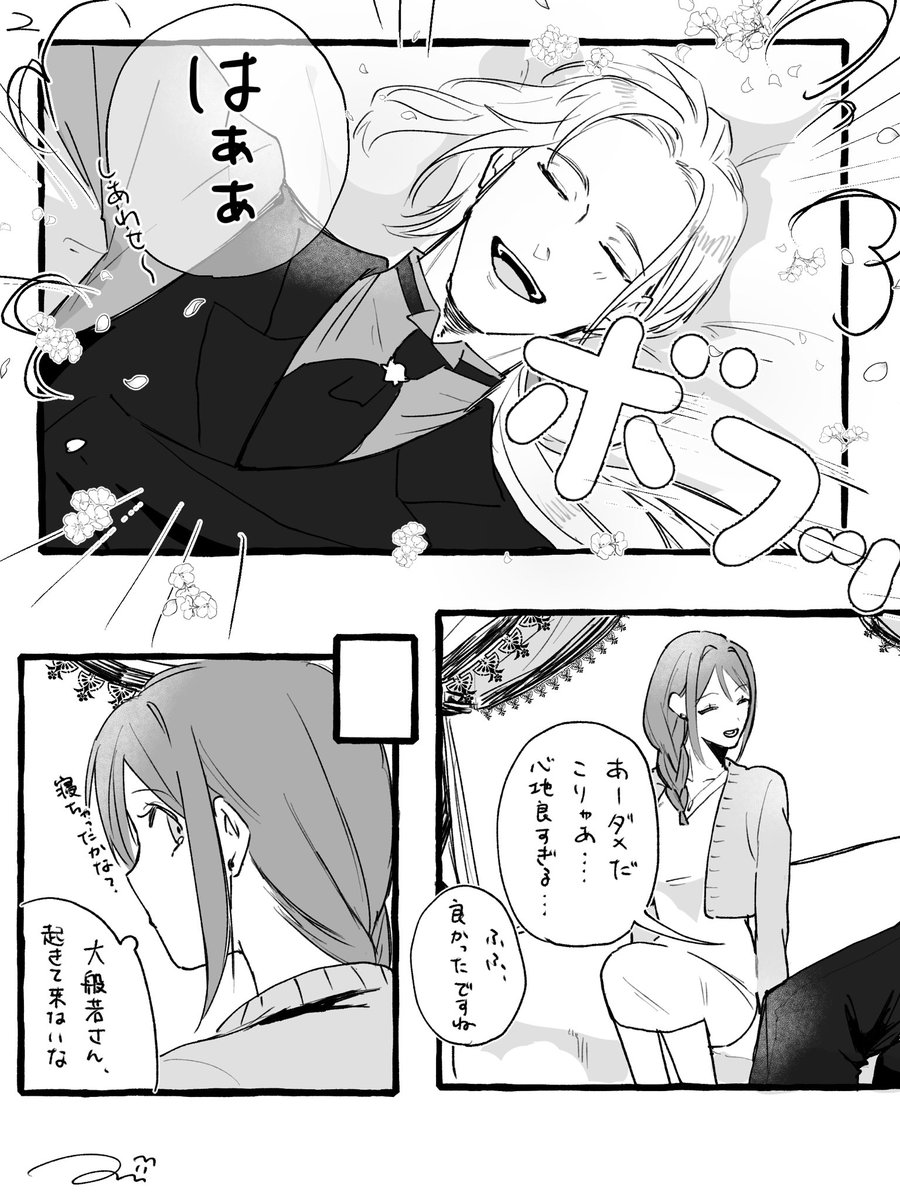 現パロ 般若さに(※顔あり)で描きました😊半分失恋 般若(←)さに 目の前の大般若さんが好きなのに、届かなくてもどかしい。けど無理だとはちゃんとわかってるつもりな女の子 twitter.com/dumuf222/statu…