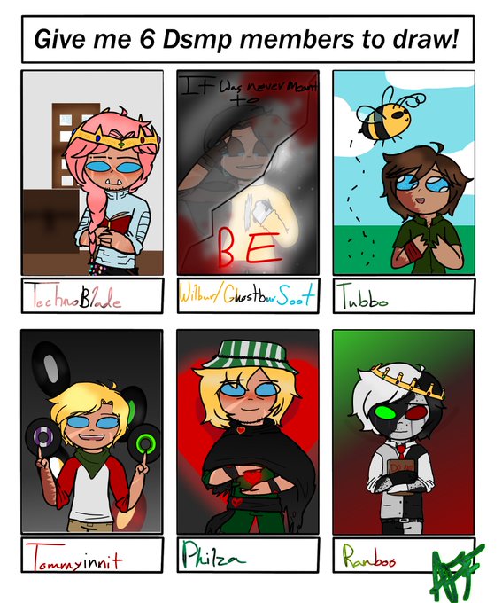 So I finished this after taking requests from some friends on Discord and I'm now very happy! Tags: #technobladefanart #wilbursootfanart #tubbofanart #tommyinitfanart #philzafanart #ranboofanart @Technothepig