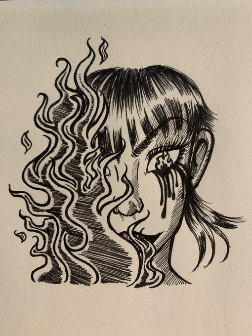 #inktober2022 #Forget October 12th drawing!! Kinda forgot ;) about it yesterday so we postin it today hehe #draw #drawing #art #artwork #sketch #ink #sketchbook #illustration #pen #blackandwhite #duckybub #artisit #creepy #sketching #woman #cry