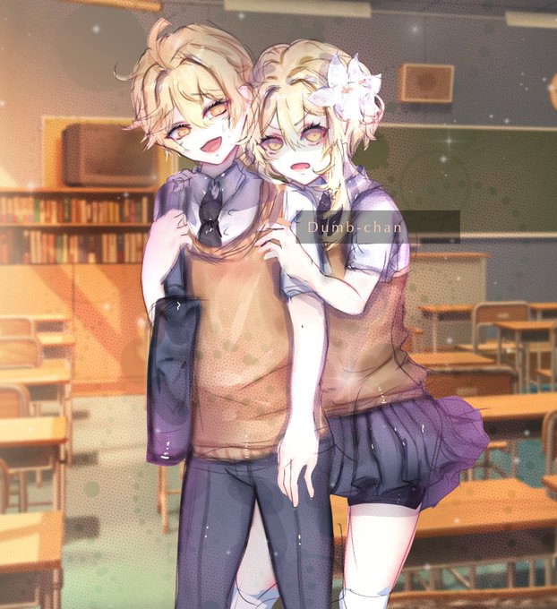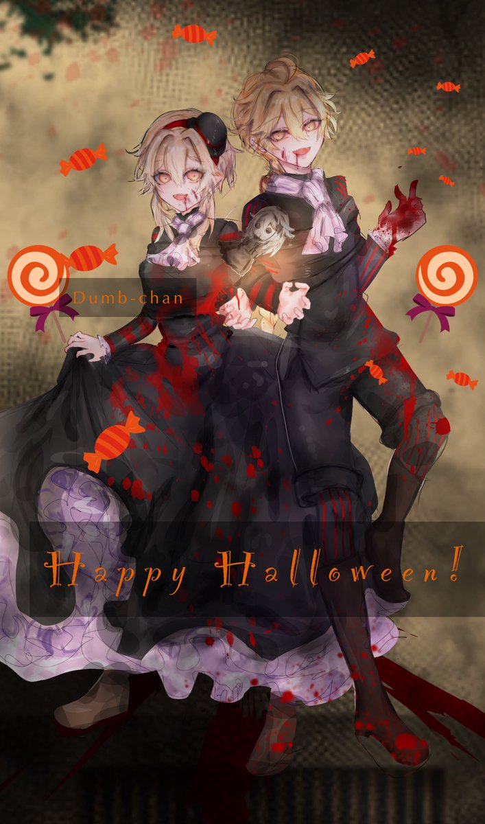 Happy Halloween everyone!! I drew these two with rin and lens outfit of “trick and treat” (song) it was pretty fun to make tbh lol either way I hope you guys like it :) #GenshinImpact #genshinimpactfanart #LUMINE #Aether #halloween2021
