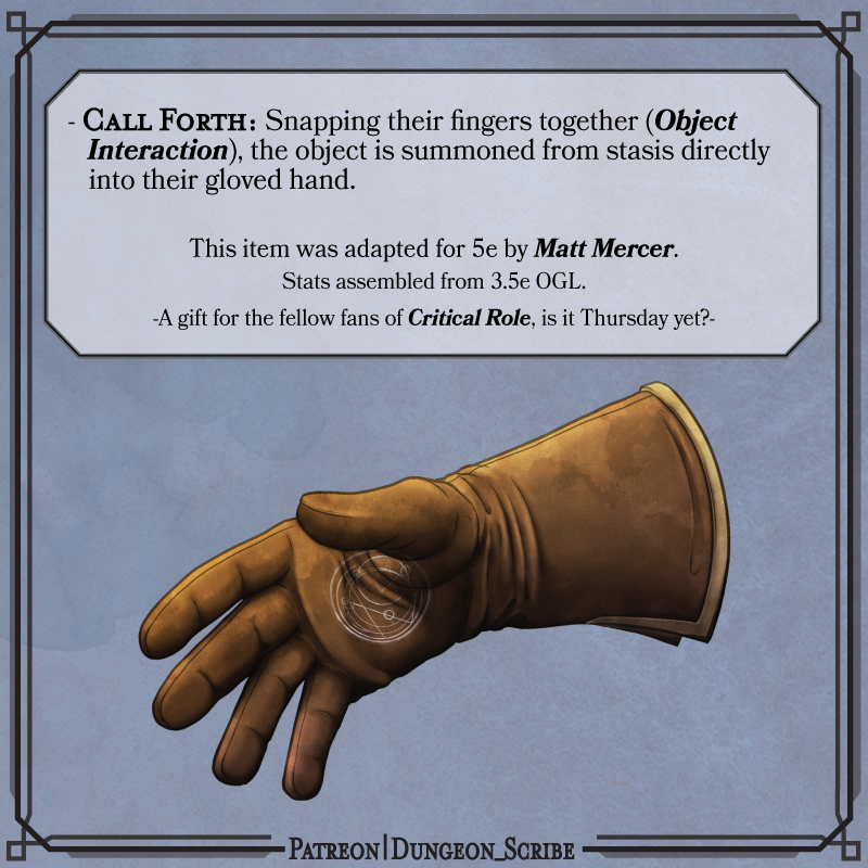 Crit Week: 3 of 3! A 3.5e adaption of a nifty utility item used by @TheVulcanSalute & implemented by @matthewmercer! As always, these are a free resource and I hope you enjoy them! Stay safe & don't forget to love eachother. #criticalrolefanart #critrole #Criticalrole #dnd