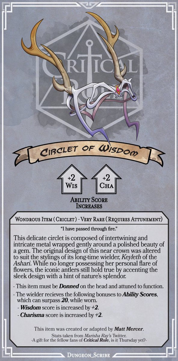 Onto Keke! For the #LegendOfVoxMachina card updates. The growth that @Marisha_Ray took this character through is nothing short of astounding. Here is the iconic headdress. By all means enjoy at your home table #criticalrolefanart 34/45: Circlet of Wisdom
