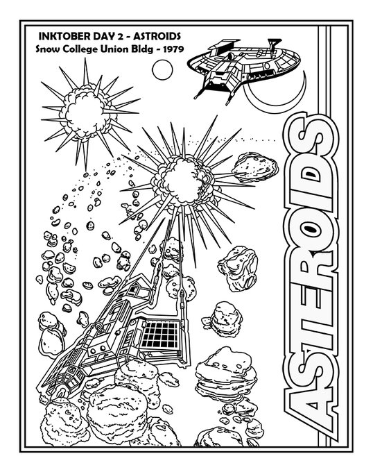 Inktober Day 2 - Asteroids. #Inktoberchallenge #inktober2022 This game kicked my trash when I was young, but it was such a classic that it stuck around for decades. Also, it was one of the best Atari 2600 ports, and one could easily argue it was better than the arcade version.