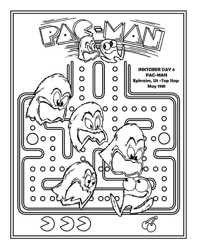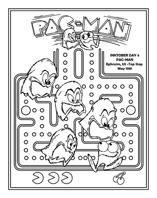 Day 4 of #inktober2022 - I first played this a year after release in a small store in rural Utah. Loads of info about this one in my book, Game On, if you're interested :). Can you hear the Pac-Man death sound? Pure, iconic, 80s, if you as me.