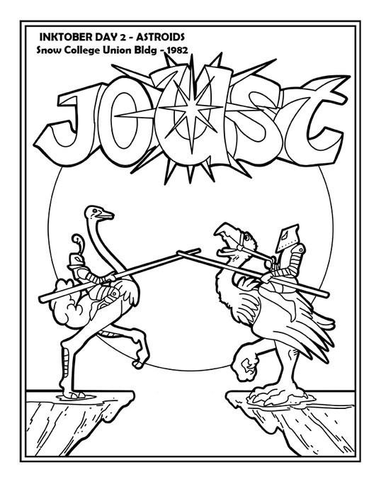 Day 7 of #inktober2022 . I adored this game. What's not to love? Simple mechanic that's hard to master, knights on the backs of ostriches and fantasy bird creatures, and pterodactyls. I mean, it's basically perfect.