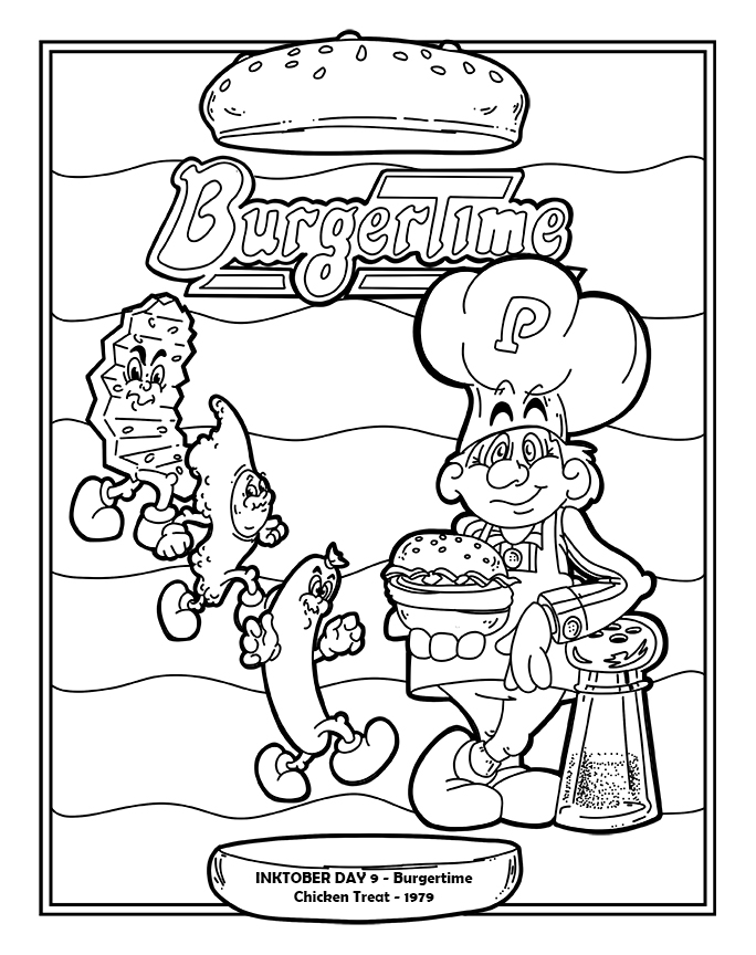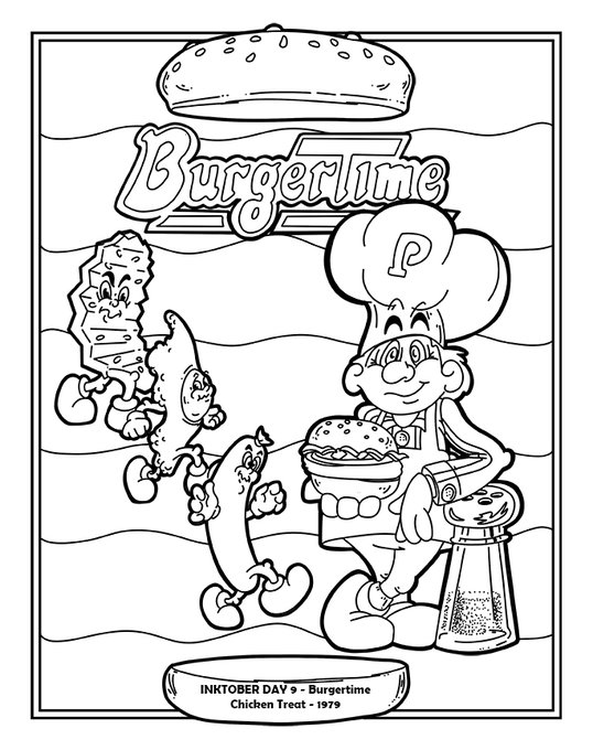 Day 9 - how did we get here so soon? Today's Inktober features one of my all time favorite HOME video games (played on my Ti994a) and an arcade game that kicked my bahookie. Burgertime - 1982. #inktober #classicarcade #8bit