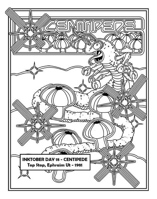 When was the first time you remember playing this game and was it on a console or in the arcade? Centipede 1981. #inktober2022 #retrogaming #arcadegames