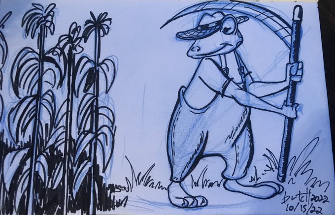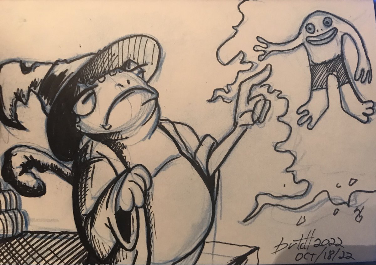 The fourth frog of October. I should really work on the lighting. #frogs #Inktober #froggyfall #broomhandle