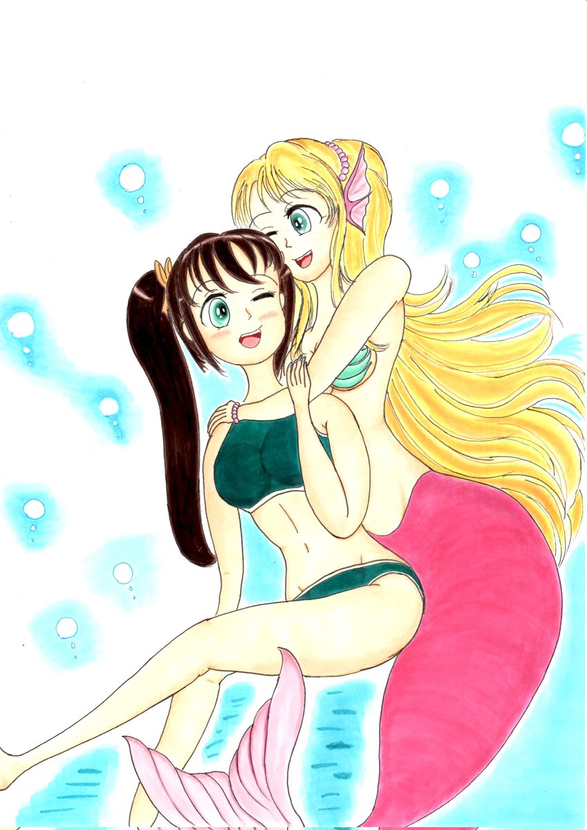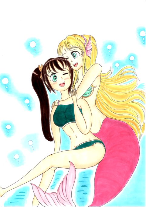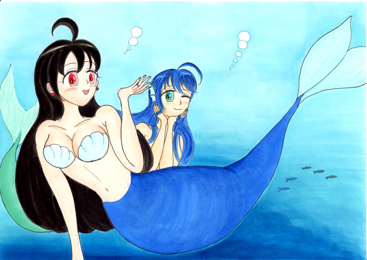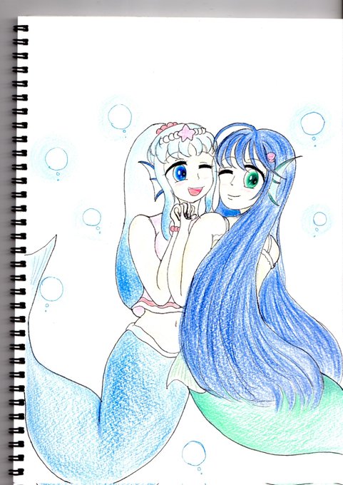 Nikoleta Dehooffaさん @NikoletaMer のニコレタさんとスィーネの人魚コラボを描いてみました!🧜♀️ #人魚