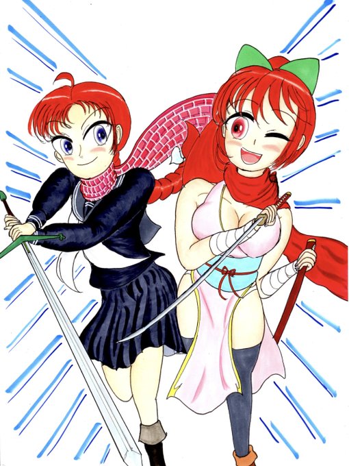 3 22 描き納めに過去と現在の凪沙を描いてたらギリギリの時間に!!😅 23/01/01 00:01