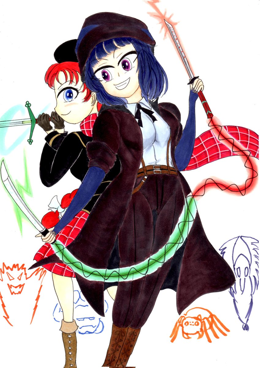 今日は相互フォロワーの南巳一郎さん(@Tu1178JleEywD1X)のお誕生日と言うことでオリキャラの鋼蕾華ちゃんとうちの子のイヴリンとのコラボを描かせていただきました😃 怨魔(?)に囲まれて一応ピンチ!なシチュエーションのつもりでしたが果たして? 遅くなりましたがお誕生日おめでとうございます!🎉