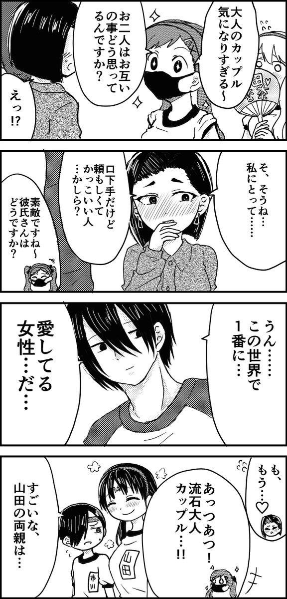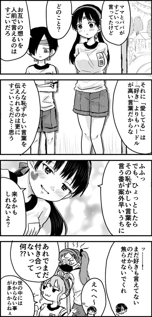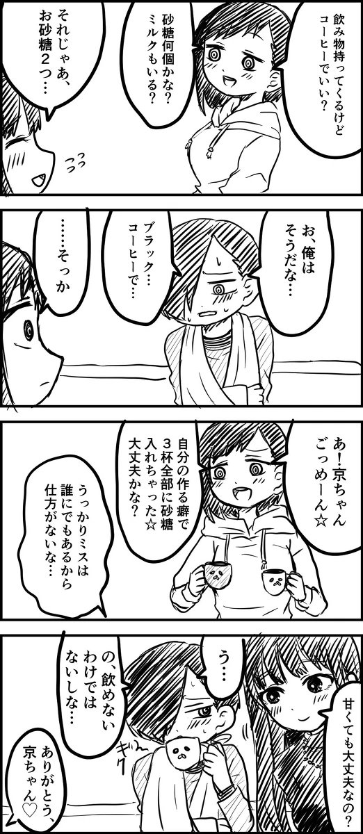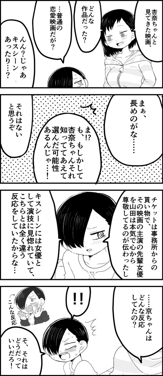 55 316 最新話読んで妄想した捏造4コマ キスシーンの反応がおねえ感あって微笑ましかったですよね 21/09/04 23:36