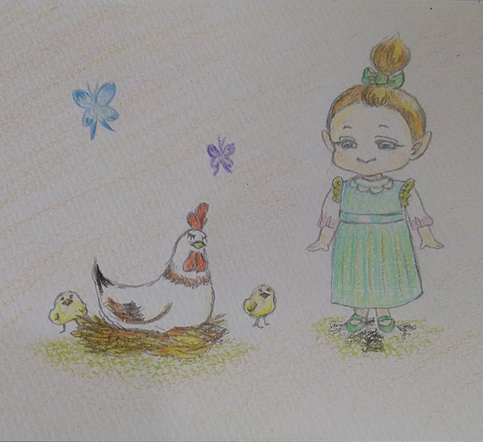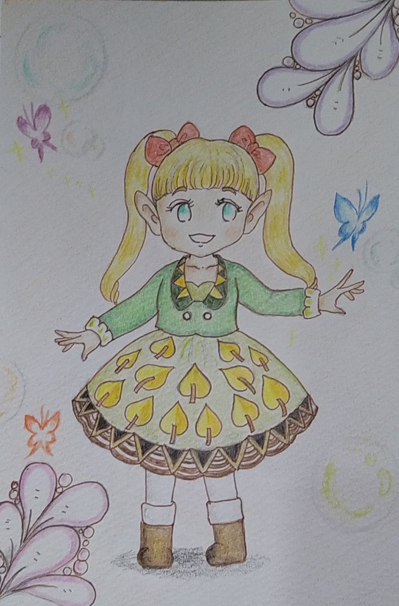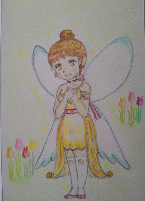 皆様こんにちは😄 今日は良いお天気で暑いですね‼️ 今日は妖精のご挨拶のイラスト投稿致します #イラスト #イラスト好きさんと繋がりたい #オリジナルイラスト #アナログイラスト #色鉛筆画 #妖精