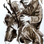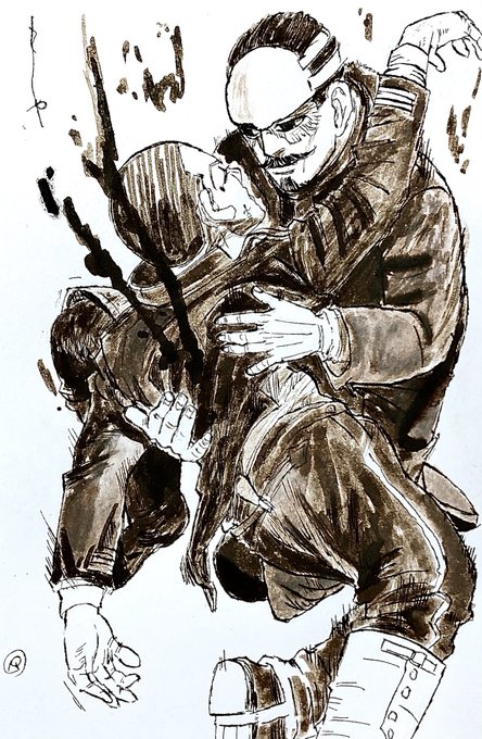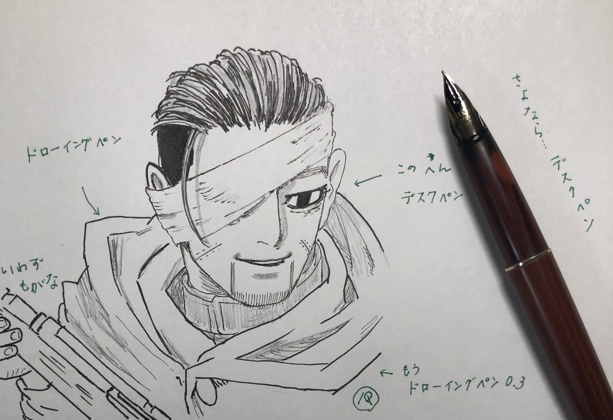 #毎月23日はフミオの日 後ちょっとが起きていられない... カバンさんの考察狙撃手フミオをガラスペンで描きました ミトンは外せ岡田 そんなに命中率は高くない岡田 多分その後前線に異動になる岡田 でも勇作殿のお陰で弾に当たらない岡田です #俺達の岡田