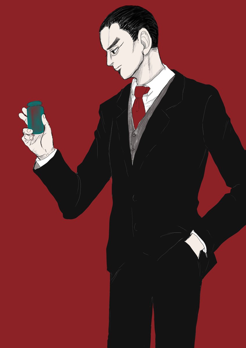 #二瓶鉄造誕生祭2022 お誕生日おめでとうございます 昨夜は3.4巻読み返して泣きました ほんまカッコいい✨✨ 筆ペンで人物を描く初チャレンジをして、私にとっては労多くして功少なしという学びも得ました 誕生花桃の花と白スーツ二瓶さん 勃起!感謝!