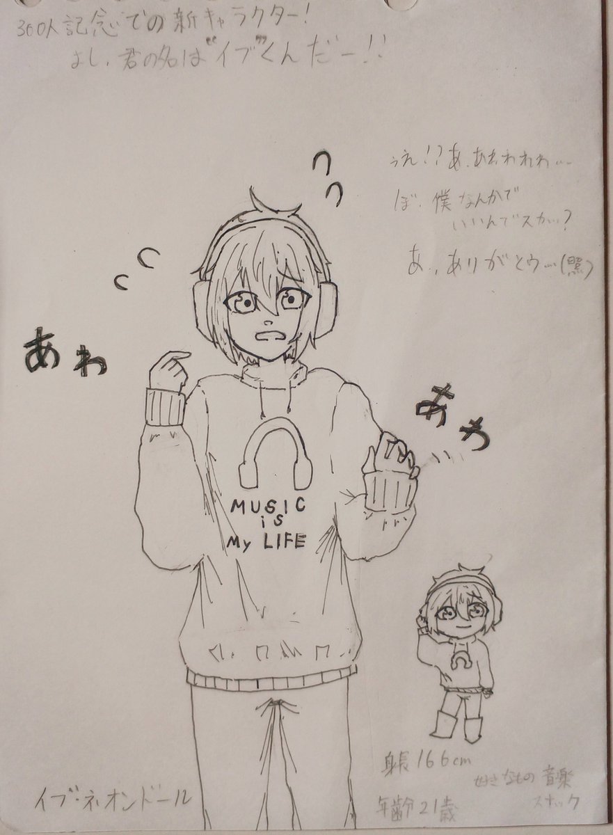 こんばんは、中間テストがあと一週間前というので色々と疲れたピノです!あと、全然投稿ができなくてすみません…リアルで色々とあったので…(転部とか勉強とか)ですが!300人記念のオリキャラの線画を持ってきたので許してください…名前はイブくんです!✨ #イラスト好きな人と繋がりたい #イラスト