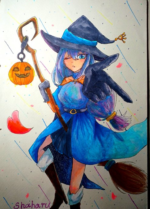 こんばんは、ピノです!大遅刻ですが、ハロウィンのイラスト描きました!✨魔女のシャハルちゃんです! #イラスト #アナログイラスト #ハロウィンイラスト #イラスト好きな人と繋がりたい いらすと #絵師さんとつながりたい