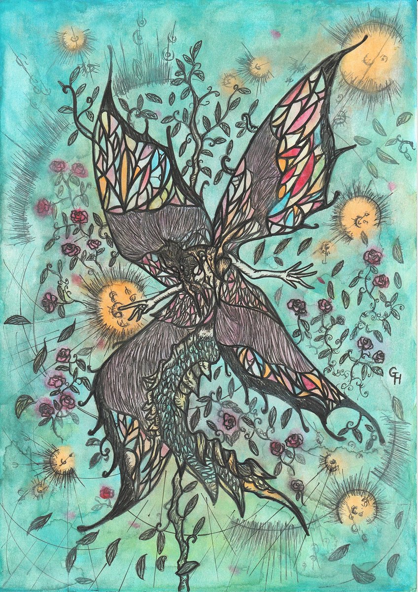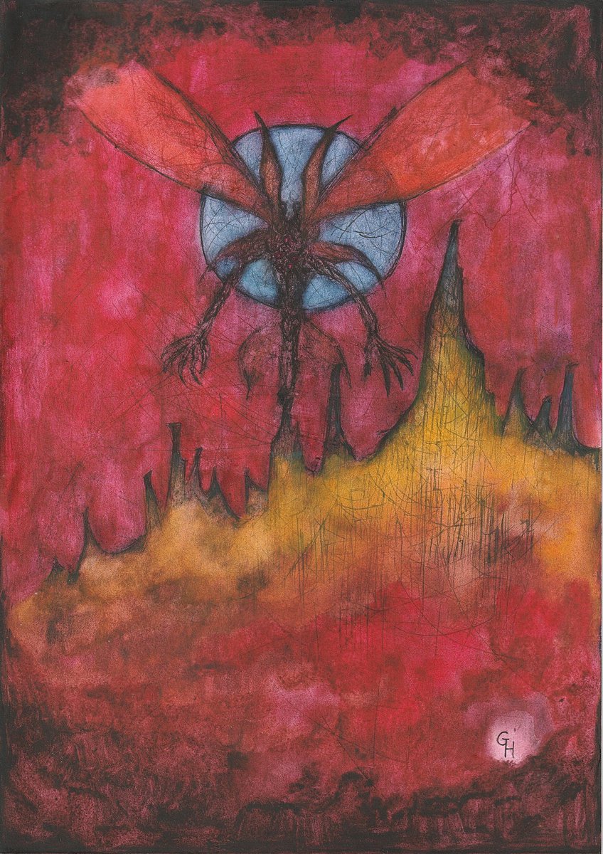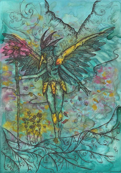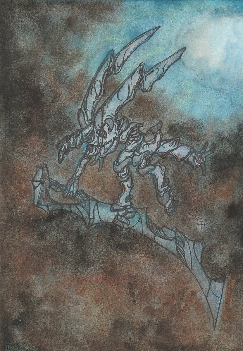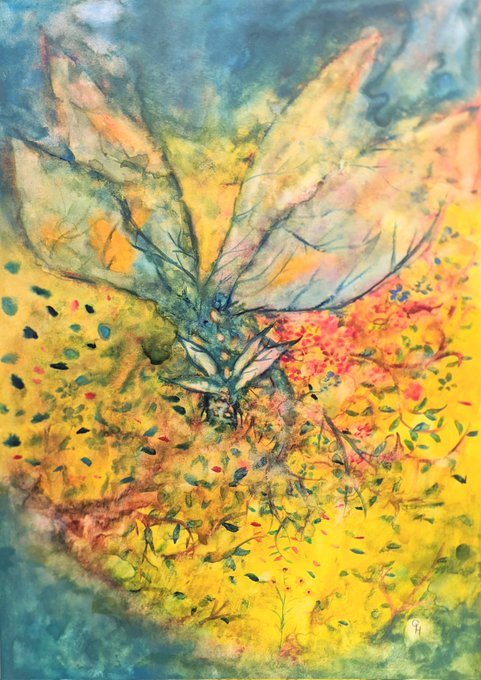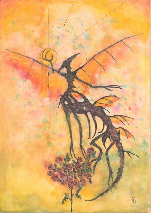 『夜想界霊 アスラ・ピネラ』 過ぎ去りし刻に抱かれた姿は崩れ、塵となりて舞い上がり。 猛き無尽の風に攫われ、遥かな地に優しく降り積もる。 生命は輪、朽ちてはまた、廻り往く。 #イラスト #イラスト好きな人と繋がりたい #イラスト好きな人と繋がりたい #絵描きさんと繋がりたい #アナログ絵