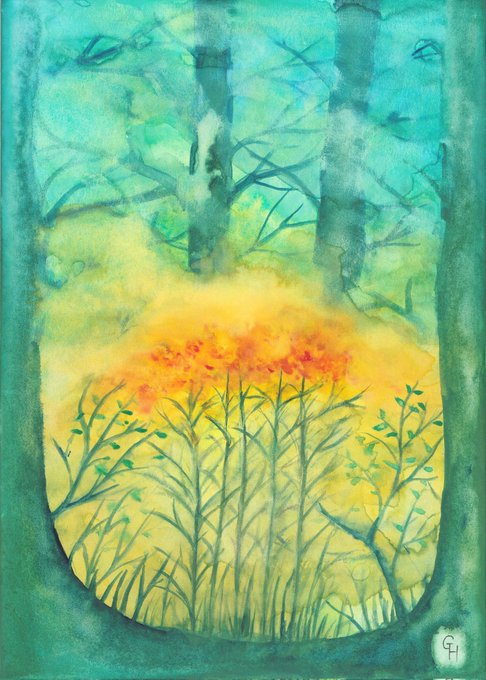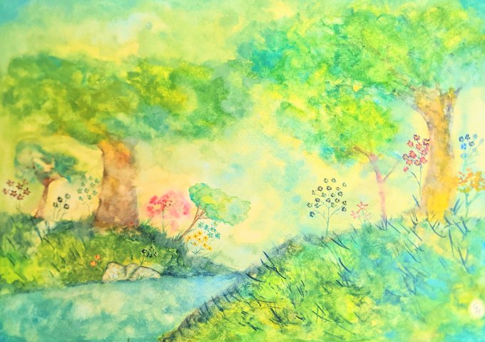 『朝の光』 その囁きを聴き逃すまいと、自然の秩序は産声の様な瞬きに耳を澄ました。 おはようございます。🍀 良いお天気が続きますね。☀️ #イラスト #イラスト好きな人と繋がりたい #絵描きさんと繋がりたい #アナログイラスト