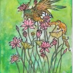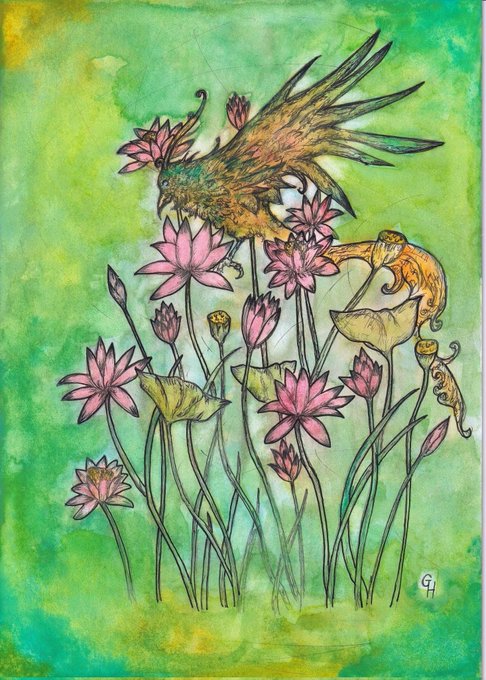 『花盛りのまなざし』 星の夜。哀しみを肥やしに、その歓びは朝を迎える。 この間、両親と訪れた蓮畑をイメージしました。🌸 おはようございます。☘️ #イラスト #イラスト好きな人と繋がりたい #絵描きさんと繫がりたい #アナログイラスト