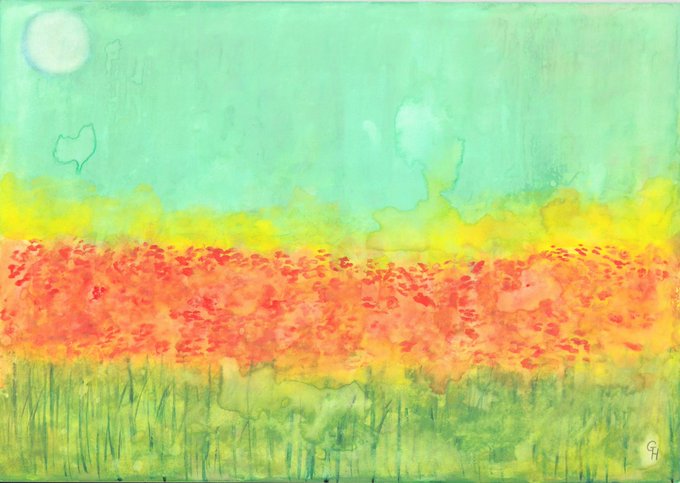 『心の旅』 そよ風に揺れるブランコ、陽だまりの息吹、春のまなざし。 果て無き静寂に耳を澄ませ、私たちは最期の安らぎを感じていた。 水彩画です。🍀 シンプルな花畑は中々描いてこなかった気がします。🌼 #イラスト #アナログ絵描きさんと繋がりたい #絵描きさんと繋がりたい