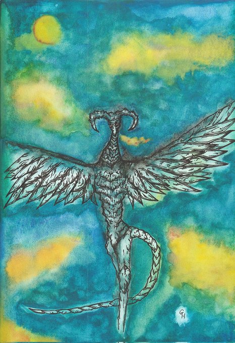 時々描く妖精竜のイラストです。🌿 今日は絵を描きながら映画『ブレードランナー2049』を観ていました。☘️ とても好きな映画で、歓びと哀しみ、孤独と安らぎが同居したラストシーンはいつ観ても胸に迫ります。⛄ #イラスト #イラスト好きさんと繋がりたい #絵描きさんと繋がりたい #アナログ絵