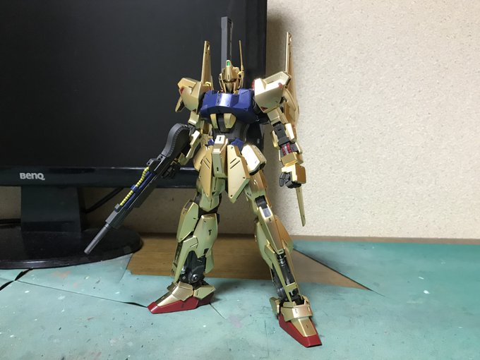 4 32 MG百式ver.2.0完成しました 金メッキというよりゴールドコーティングみたいな感じなので映り込みを気にせず撮影出来るのは楽で良いね ゼータver.kaと並べても遜色ないクオリティなのは嬉しいしこれは買って正解だった #MG #ガンプラ 23/06/14 23:32
