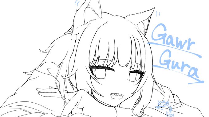 さめねこぐらちゃんを描きました。かわよい。 I drew a picture of the CatShark Gura-chan. very cute. #gawrt #illustration