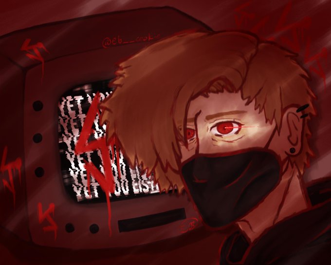 cw// eye contact, repeating phrases / repeating words, repeating symbols (gen loss symbol), caps "YET YOU LISTEN ANYWAY." my first gen loss piece! [#generationlossfanart #ranboofanart ]