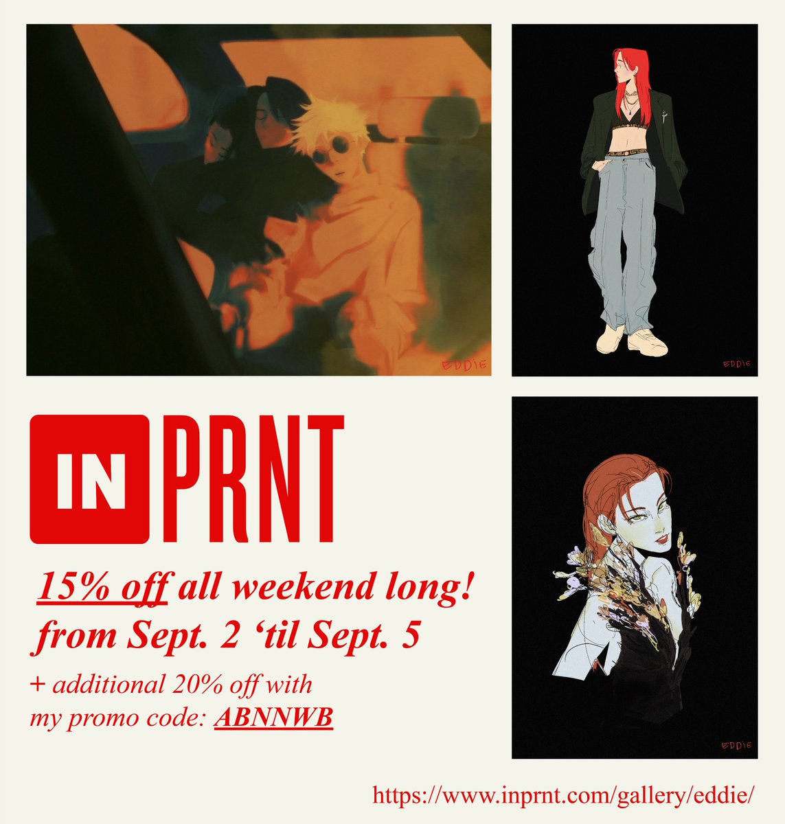 hello good morning! just fyi, inprnt is having a 15% sale for the whole weekend long, yall could use my promo code as well for additional discounts #artistsontwitter check out my store here inprnt.com/gallery/eddie/. .