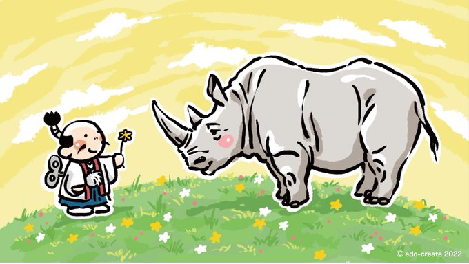 今日は #WorldRhinoDay #世界サイの日なのじゃ 🦏🌍 今、世界には5種類のサイがいるのじゃが、その全てが絶滅危惧種に指定されておるのじゃ😥 その危機的な現状とサイの保護をアピールすることが目的の記念日なのじゃよ📢 #今日は何の日 #サイ #イラスト #えど丸くん