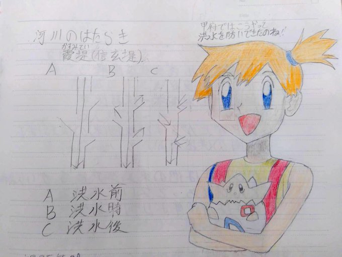 #ミュウツーの逆襲 公開記念に毎度おなじみ授業ノートにカスミを落書き。ちょうど霞堤を取り上げてくれた先生GJ #ポケモン #イラスト #創拡 #色鉛筆 #アナログ #模写 #シャーペン #絵描きさんと繋がりたい #絵描きさんとつながりたい #絵描きさんと仲良くなりたい