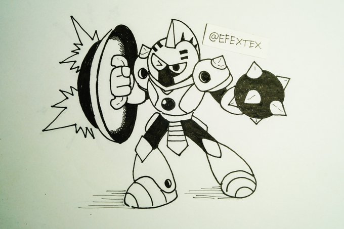 Day 14 #inktober2020 "ARMOR/ARMADURA" KNIGHTMAN DEFENDING HIMSELF #Inktober #megaman #knightman #robotmaster #MEGAMAN6