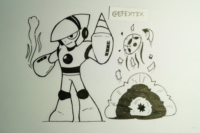 Day 9 #inktober2020 ""Throw/Lanzar"" Quick man throwing some quick boomerangs! #Inktober #megaman #quickman #megaman2 #robotmaster