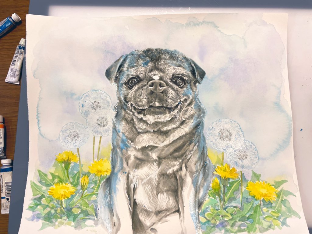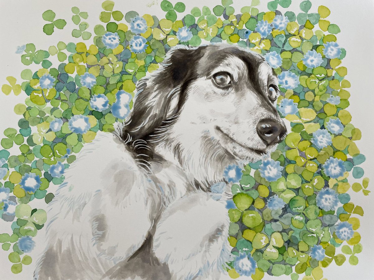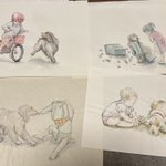左上が最後にかいたやつ。左上の黒いグチャグチャは、パーカーの濃淡つけたインクにマスキングして、これから水彩で背景描く前に、本体のインク画を保護して、色が溶け出さないか、マスキング剥がした時、色が抜けちゃわないかの確認用。 疲れた。今日はここまで。 #水彩画 #ウォーターフォード