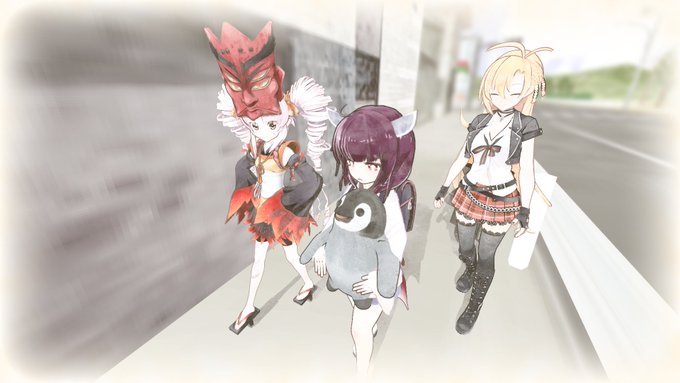 お題:ペンギン #ついなちゃんフラクリ #ツルマキマキ #きりたんキラキラ金曜日 うまくネタがまとまりきらなかったので20分静画で堪忍! ウチの子たちでどこかから遊び帰り的な…(^ω^ ≡ ^ω^)