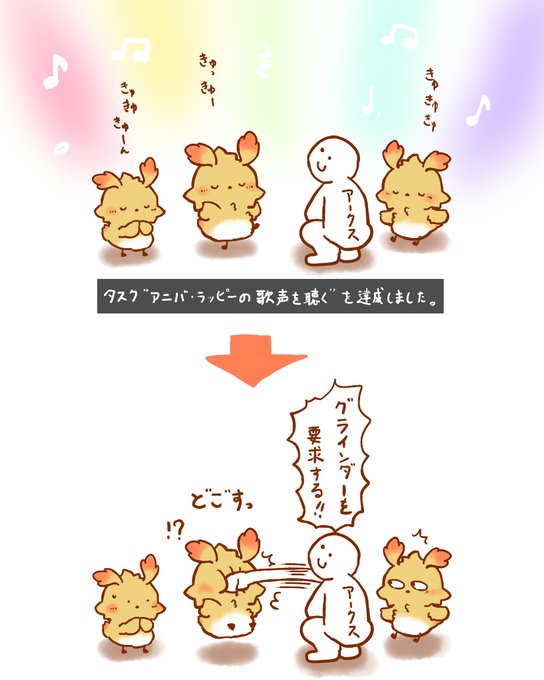 ラッピー好きのみんな!とうとう殴らずに歌を聞くだけでタスクをクリアできる日がやってまいりました!!! これで罪なき愛くるしい姿を傷つけることが無く・・・なるはずもなく、特にデメリットが存在しないので理由もなく引っぱたかれる日々に変わりはありません!! 頑張れラッピー!!!