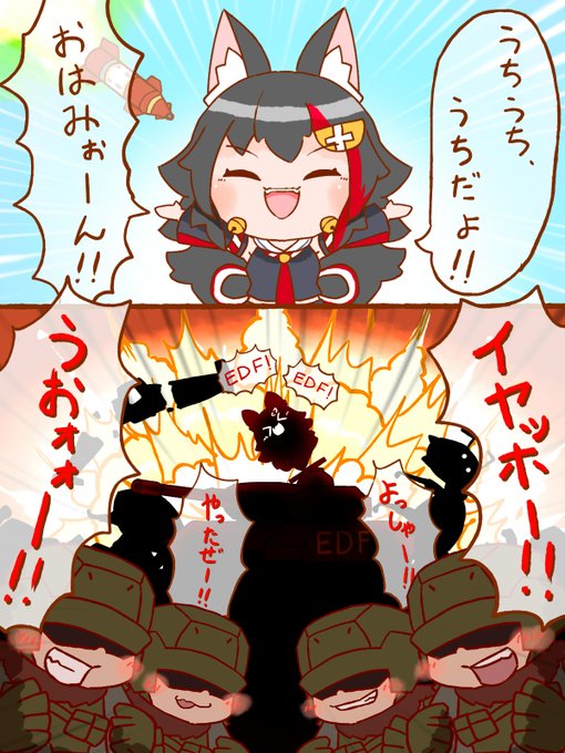 ミオちゃんたちがなんか喋るたびに戦うのをやめていちいち騒ぎ散らすEDF隊員達が最高に面白いきゅ #みおーん絵 #地球防衛軍6
